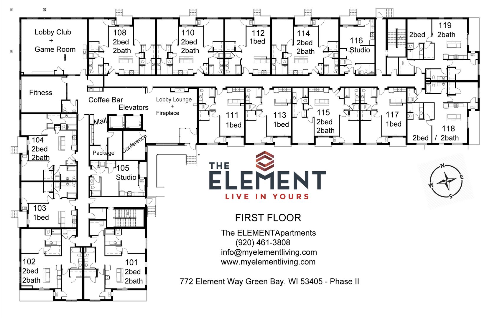 Come check out our in building Fitness Center, Game Room, Lobby Lounge, indoor and outdoor Club Room with deck and views to Lambeau Field, and secure package room.